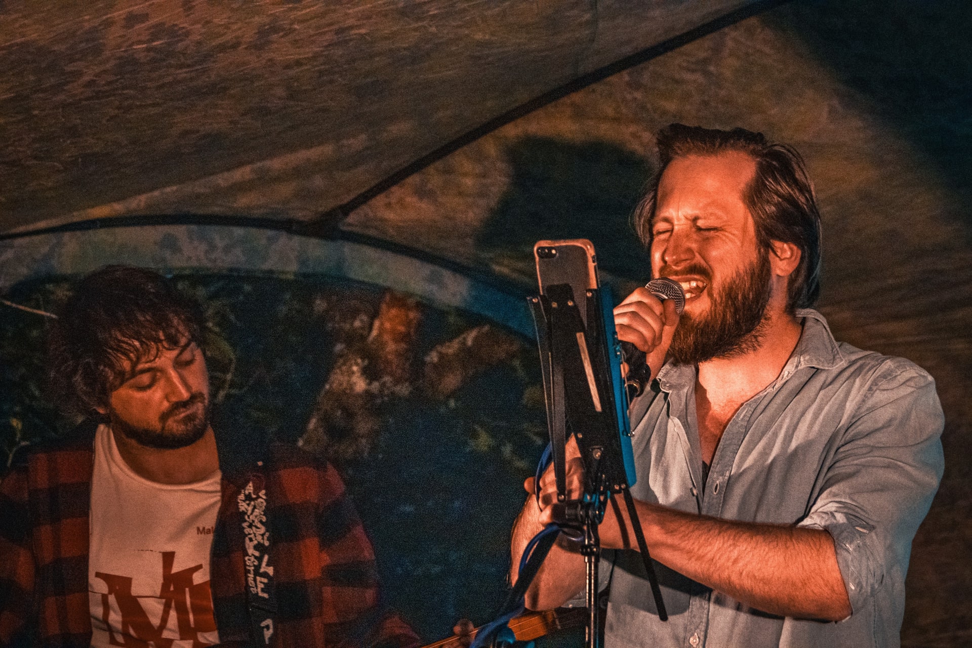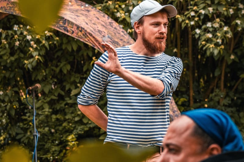 Loni se nám stávalo, že v čase, kdy se jeden hudebník balil a další rozbaloval, bylo ticho, které se dalo využít k družnému hovoru.